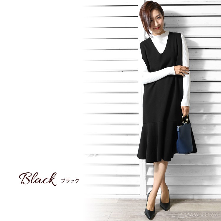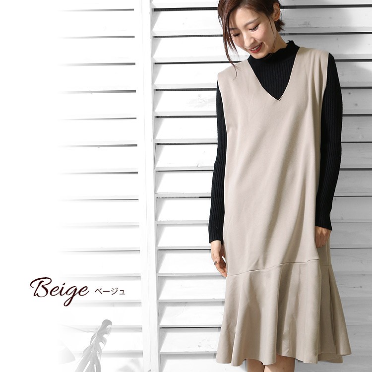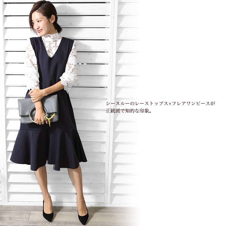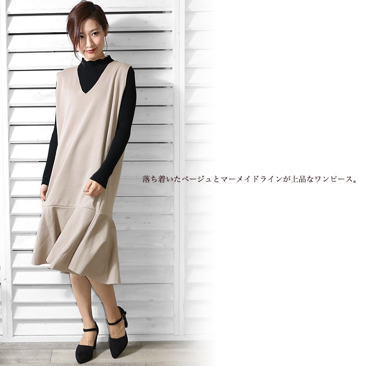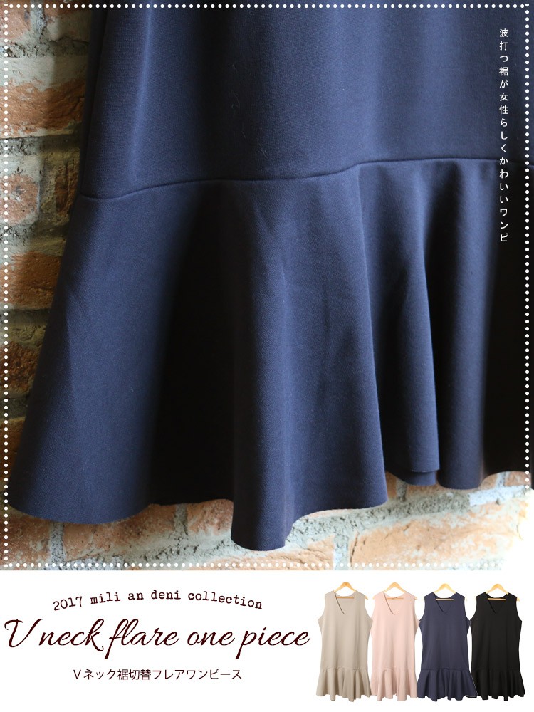 商品名:Vネック裾切替フレアワンピース