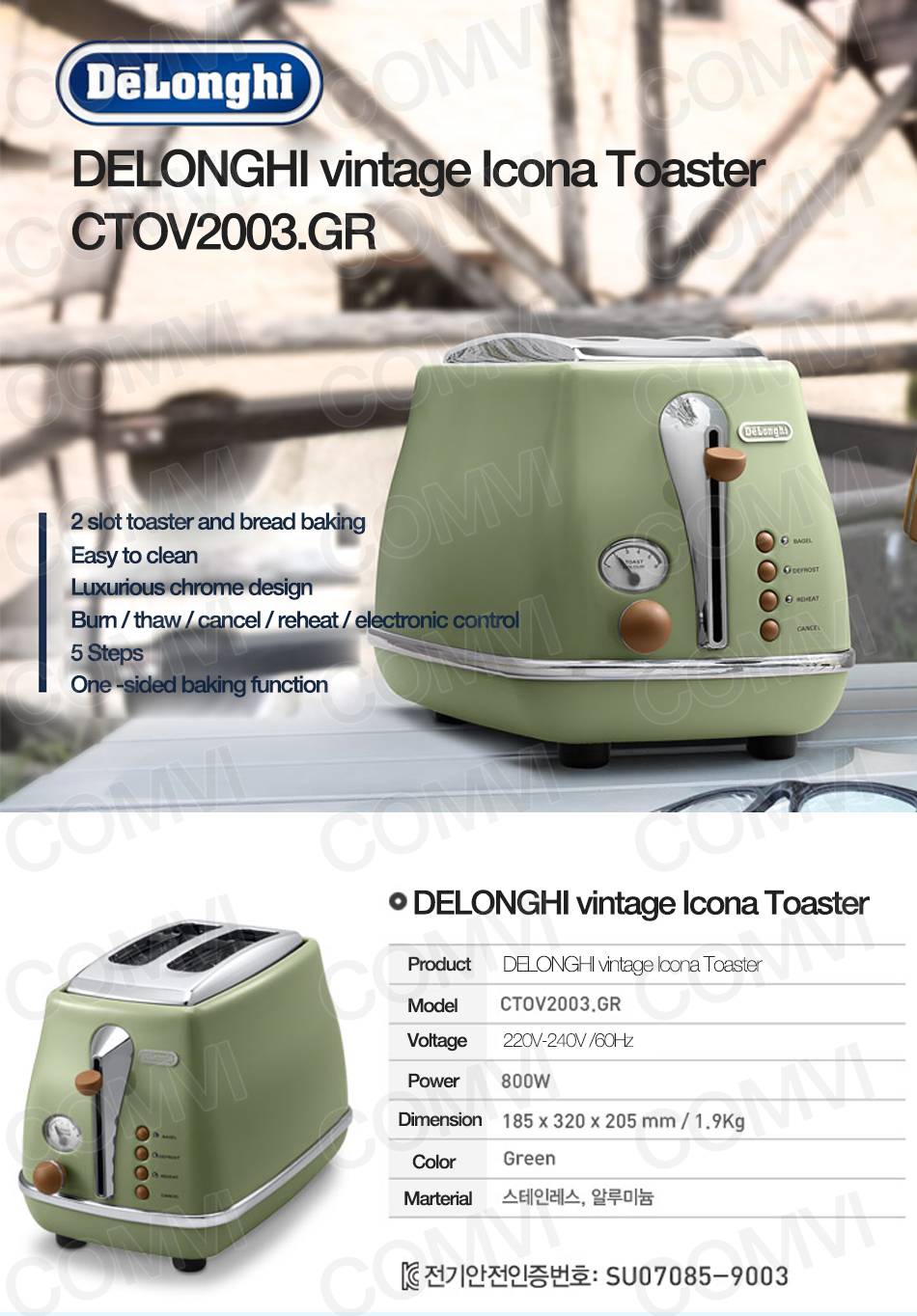 [DELONGHI vintage Icona Toaster CTOV2003.GR Green Toast 2 Holes]