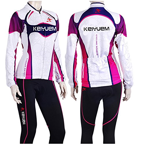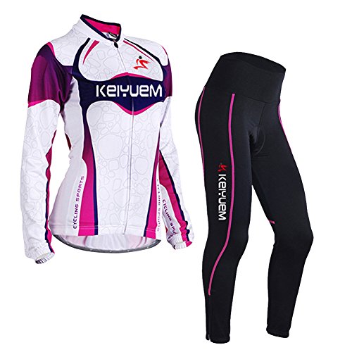 Womens Cycling Jersey Pants Set - LSERVER 2017 New Design Womens Long Sleeve Cycling Jacket + 3D Padded Tights Pants