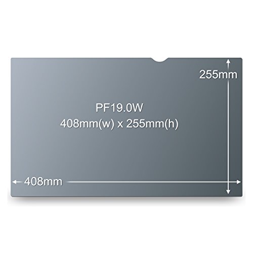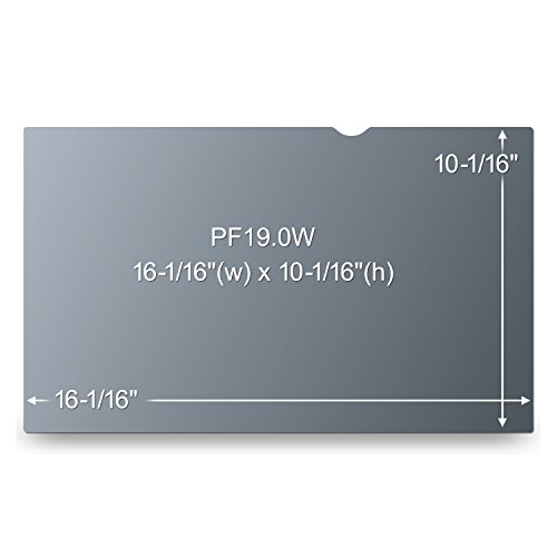 - Feature : Keeps your personal or confidential information safe from prying eyes. Product is measured 19" diagonally. / You'll see the information on your display while people on either side only see a darkened screen / Designed to fit widescreen desktop LCD monitors with a diagonally measured 18 15/16" viewing screen and a 16:10 aspect ratio / Actual filter dimensions are 16 1/16" wide x 10 1/16" high (408 mm x 255 mm) / Includes your choice of two easy-to-use attachment methods / Reversible, matte side reduces glare and reflections / Lightweight, thin, frameless design. Customer Service can be reached at 1-855-310-8716 / Protects display from dirt, debris and scratches / Cleans easily with a soft cloth and water / Great for high traffic areas and open office environments / Limited 1-year warranty.