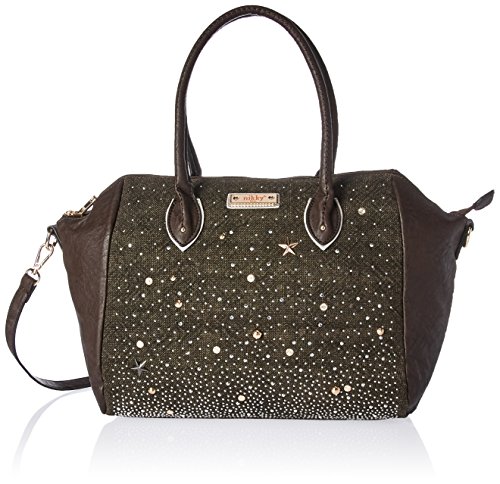 Nikky Women's Top Handle Glitter [Brown] Satchel Detachable Strap Shoulder Bag, Chocolate, One Size