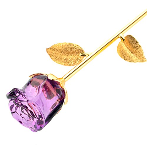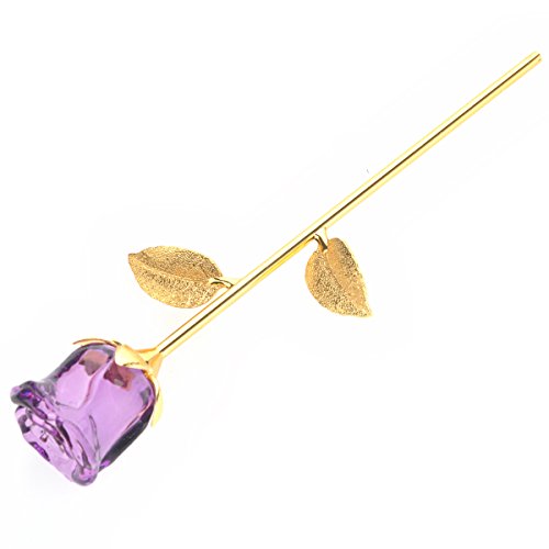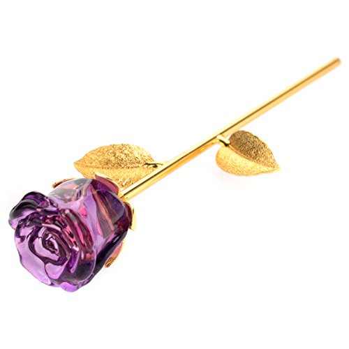Pixnor Rose Flower Glass Pipe for Valentines Day Birthday Mother Day Anniversary Gift Purple Size L