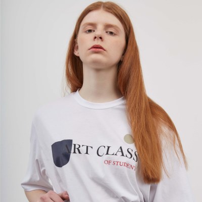 도형과 레터링의 색감이 돋보이는 티셔츠입니다.
