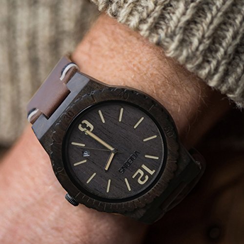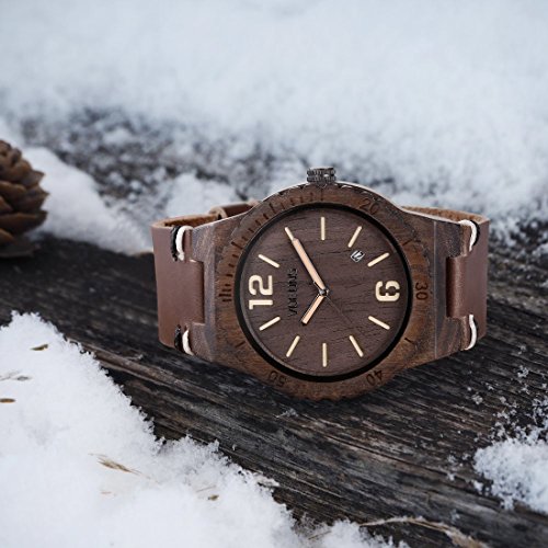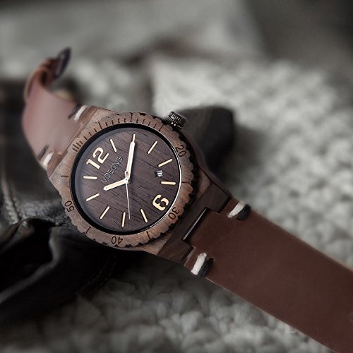 REAL EBONYWOOD:This handmade men's wooden watch uses natural wood and genuine leather strap, which is non-toxic hypo-allergenic and eco-friendly, if you like nature, you will like it