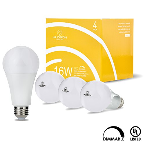 Hudson Lighting LED Light Bulbs, Dimmable 100 watt equivalent (16W), Soft/Warm White (3000k), General Purpose A19 Led Bulbs, E26 Base, 4 Pack