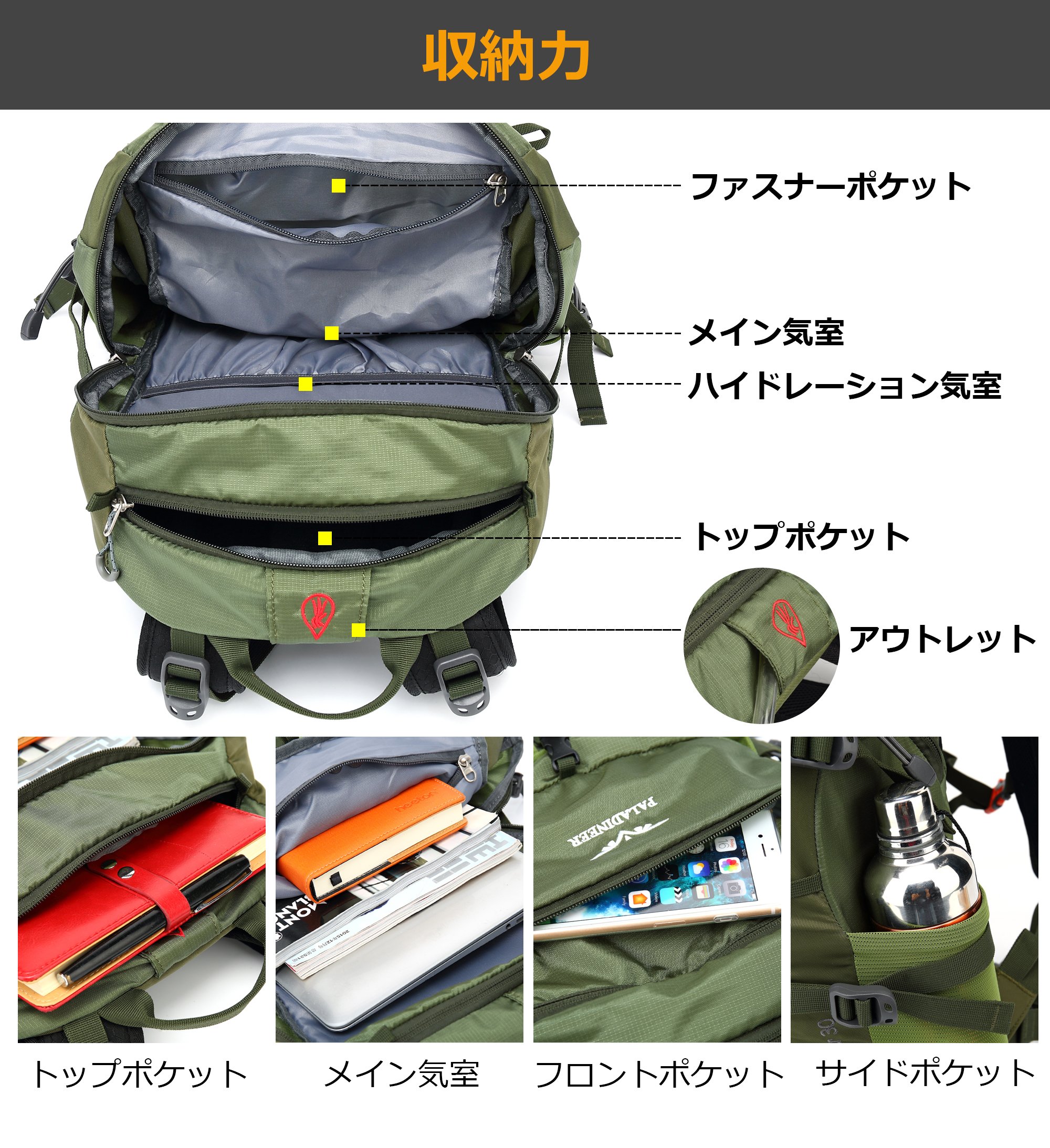 * There are lots of straps and adjustable belts on the outside of the bag, and you can store things like trekking poles, leisure seats, tents.