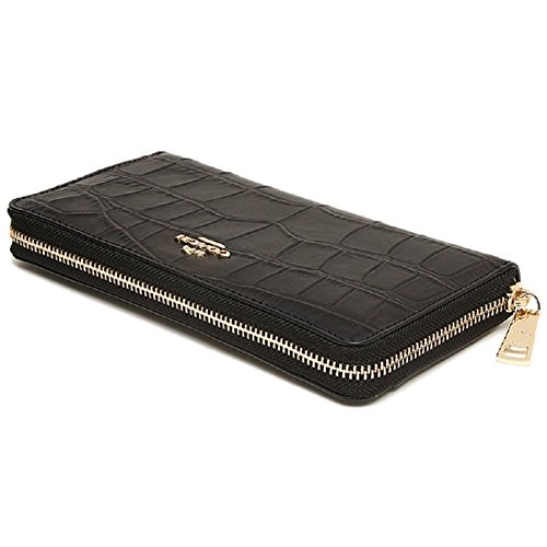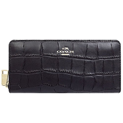 COACH F53836 IMBLK ACCORDION ZIP WALLET IN CROC EMBOSSED LEATHER