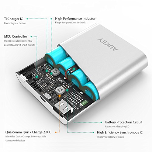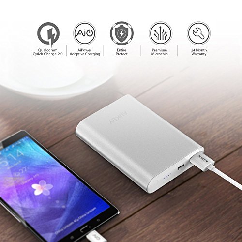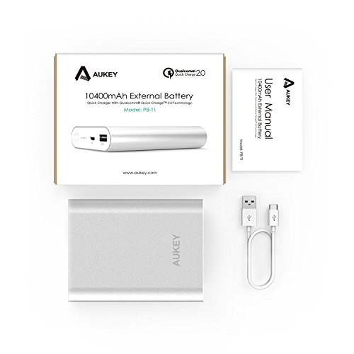 -. Feature : Qualcomm Quick Charge 2.0 Technology: Charge compatible Qualcomm Snapdragon powered devices up to 75% faster than conventional chargers. / Fully charged: Charge the iPhone 6S about 4 times/iPhone 6S Plus about 2.5 times/Galaxy S7 over twice or an iPad Air about once. / Compatible models: Samsung Galaxy S7/S6/S6 Edge/Edge+, Note 5, Note 4/Edge, Nexus 6, Sony Xperia Z4, Z4 Tablet, Z3, Z3 Compact, Z3 Tablet Compact, Z2 Tablet, Motorola Droid Turbo, HTC One M9, HTC One M8, One LG G Flex2, G4 and more (Moto X style and Moto Pure Edtion 2015 not supported). / AUKEY Entire Protect: Safeguards your USB powered devices against excessive current, short circuits, overheating and over charging. / Package Contents: AUKEY 10400mAh External Battery,15cm Micro-USB Cable, User Manual and 24-Month Warranty Card.