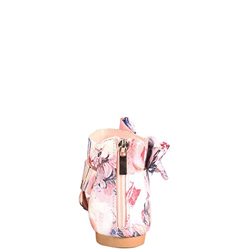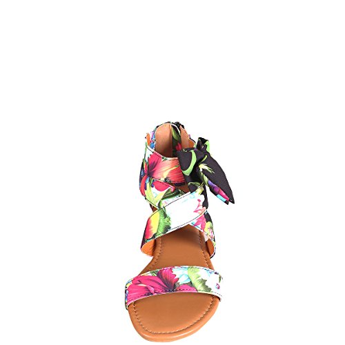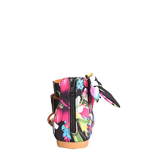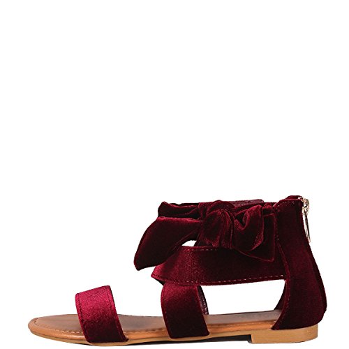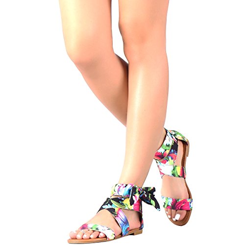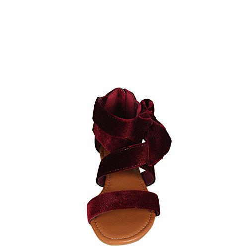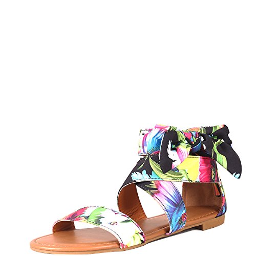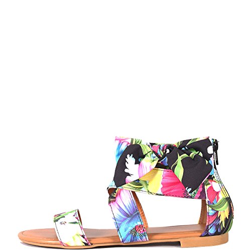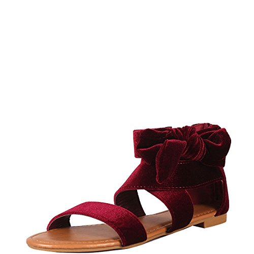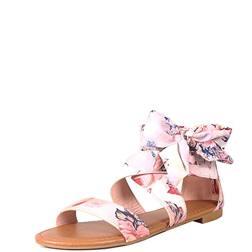Bamboo Womens Open Toe Criss Cross Strappy Bow Ankle Strap Back Zipper Gladiator Flat Sandal
