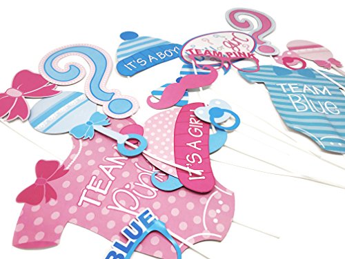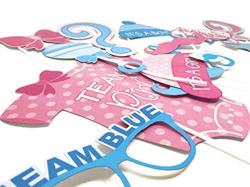 Studio : Express Novelties Online Publisher : Express Novelties Online Binding : Health and Beauty Product Description TIME TO DECORATE: Make some memories at the big reveal. Set of 18 reusable decoration cutouts photo booth accessories. Made of sturdy cardstock, these pink and blue props make super cute photo props for you and your guests. They're attached to thick plastic sticks to hold for pictures. Assorted sizes and shapes, no 2 pieces are alike. PICTURE PERFECT: Add interactive play to your party, get your guests involved. Guests will have a blast choosing their favorite props and posing for pictures together. Set includes: team pink glasses, team blue glasses, pink rattle, blue rattle, team pink onesie, team blue onesie, pink pacifier, blue pacifier, pink mustache, blue mustache, pink bow, blue bowtie, pink question mark, blue question mark, pink lips, it's a girl hat, it's a boy hat and boy or girl word bubble. OH BABY: Our baby gender reveal photo prop cutouts will help you easily create fun photos at your baby shower or party. Terrific addition to a Gender Reveal Party, Announcement party, Bridal Showers, Office party, or to decorate your baby's nursery. Photographs of family and friends at the baby shower will serve as a sweet keepsake and unforgettable memories. GREAT VALUE: Save time and money, create a festive atmosphere in minutes. Vibrant colors and sturdy cardstock. Coordinate these photo props with other baby shower supplies and party decorations for an attractive affair. Guests will have a blast choosing their favorite props and posing for pictures together. QUALITY: Comes ready to use. Sturdy plastic sticks are already attached to cutouts. No DIY, no last fumbling to assemble! No prep required. Open and go! 0
