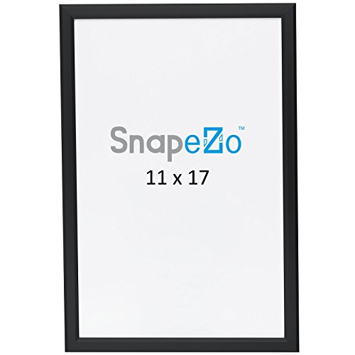 Diploma Frame 11x17 Inch, Black SnapeZo 0.77" Aluminum Profile, Front-Loading Snap Frame, Wall Mounting, Slim Series