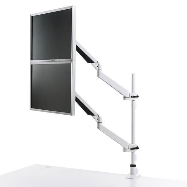 ●水平垂直多関節液晶モニタアーム。机上面を有効活用。画面の位置を上下左右自由自在に。