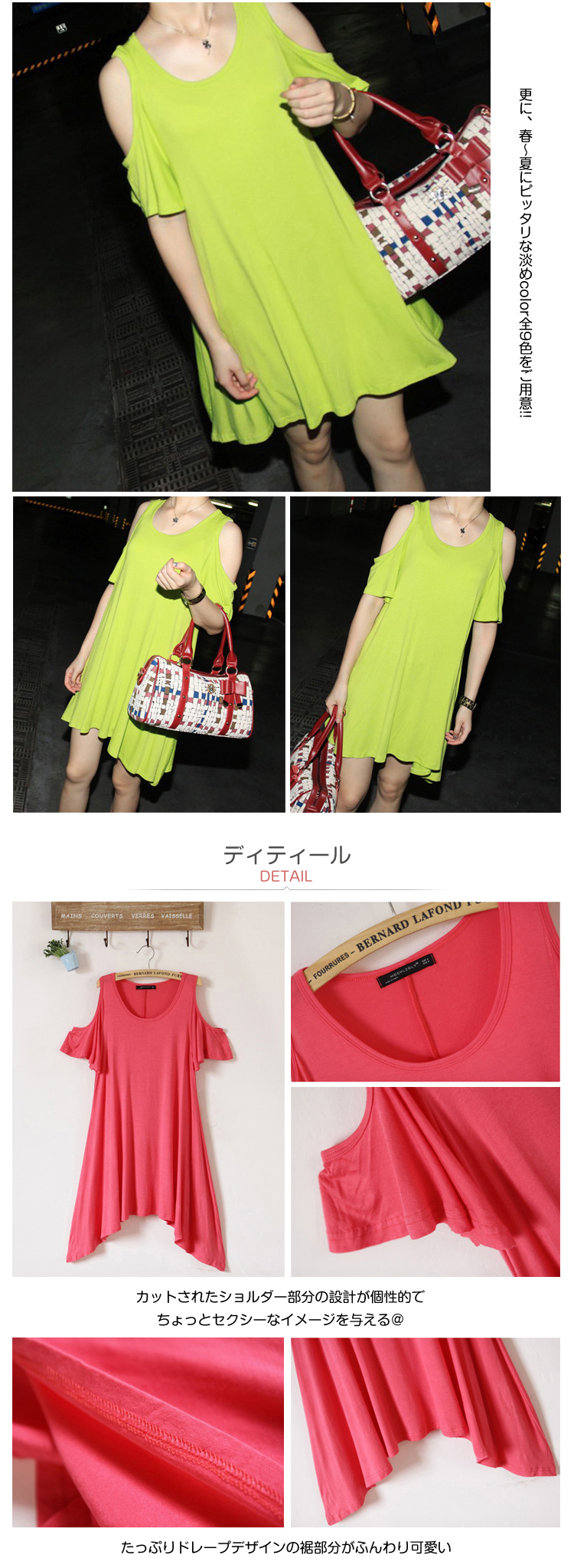 | 春の肌魅せ解禁★肩オープンチュニックワンピ登場♪柔らか素材で着心地もバツグンです!!肩部分が穴あきになって落ち、肌見せが出来る!ちょいセクシー!チュニックでもワンピでも着回せるゆるシルエで体系カバーも実現し、レギンスやスキニーとの相性も◎更に、春?夏にピッタリな淡めcolor全9色をご用意!!デート服にも、持ってこいの女子必見ITEMです☆ | |