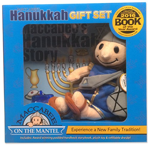 Studio : Toy Vey Toys Publisher : Toy Vey Toys Binding : Toy Product Description Maccabee’s Hanukkah story won the 2016 book of the year award for a reason. It’s based on the true story of Judah Maccabee and the battle to win back their temple. Not a fictitious character. Sometimes we get caught up in all the hype and forget about the truth. The story of Hanukkah is based on Judah Maccabee and his family. This Maccabee's Hanukkah new gift set contains, a Judah Maccabee 9 inch plush warrior toy, a beautifully illustrated large 10” x 10” padded hardback book that teaches the true story of Hanukkah. Also included is a 3 inch refillable dreidel. 0