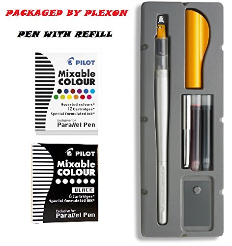 Pilot Parallel Pen 2-Color Calligraphy Pen Set with Black and Assorted Colors Ink Refills, 2.4 mm Nib (90051)