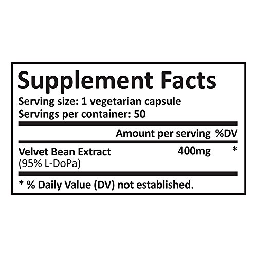 -. Title : Pure Science Mucuna Pruriens (Velvet Bean) Standardized 95% Mucana L-Dopa Extract 400mg – Testosterone Supplement, Improves Mood & Boosts Libido - 50 Vegetarian Capsules