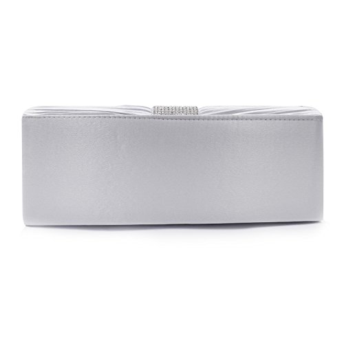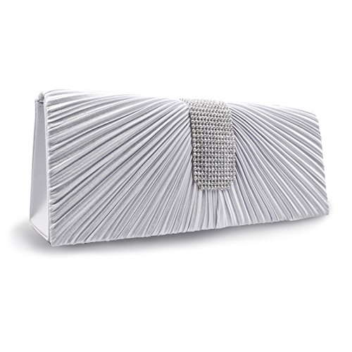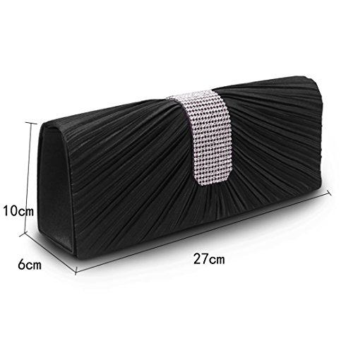 Made of high quality rhinestone and satin; glitter and glossy to look, very comfortable and durable to use. Rhinestone decor and pleated design look so shiny and fashionable, dresses up you charming and outstanding in the crowd. Long chain strap adds beauty and also provides convenience to carry. Small but exquisite, can easily fit your cell phone,sunglasses, car keys, mirror, lipstick and other small things. Great gifts for women. Perfect for evening, party, wedding and bridal.