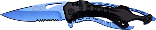 -. Binding : Sports -. Brand : Mtech USA -. Department : mens -. Feature : SP.R.Ing assist folding knife offers rapid one-handed deployment, locks securely into place with liner lock / Stainless steel blade with coating / Comes complete with a pocket clip for easy and safe carry; includes bottle opener and glass breaker / 4.5-inch closed length; 3.75-Inch blade length with 3 mm thickness / Stainless steel half-serrated blade with blue titanium coating / Blue and silver titanium-coated aluminum handle -. Label : MTECH USA BALLISTICS -. Manufacturer : MTECH USA BALLISTICS -. ProductGroup : Sports -. ProductTypeName : SPORTING_GOODS -. Publisher : MTECH USA BALLISTICS -. Studio : MTECH USA BALLISTICS -. Title : MTech USA Ballistic MT-A705 Series SP.R.Ing Assist Folding Knife, 4.5-Inch Closed