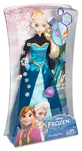 -. Binding : Toy -. Brand : Mattel -. EAN : 0746775264048 -. Feature : Inspired by the hit new Disney animated film, Frozen / Girls will love reenacting their favorite scenes from the movie / Use the color change wand to magically reveal charming P.R.Ints / Color change features a Norwegian rosemaling design / Includes doll with color change dress and wand -. IsAdultProduct : 0 -. Label : Mattel -. LegalDisclaimer : Choking Hazard. Small parts. Not recommended for children under 3 years of age. -. Manufacturer : Mattel -. Model : Y9964 -. MPN : Y9964 -. PackageQuantity : 1 -. PartNumber : Y9964 -. ProductGroup : Toy -. ProductTypeName : TOYS_AND_GAMES -. Publisher : Mattel -. ReleaseDate : 2013-10-01 -. Studio : Mattel -. Title : Disney Frozen Color Change Elsa Doll -. UPC : 746775264048 -. Warranty : 1 year warranty against manufacturer defects