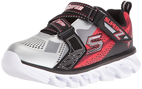 Skechers Kids Boys' Hypno-Flash Light Up Loafer, Silver/Red, 5 M US Toddler