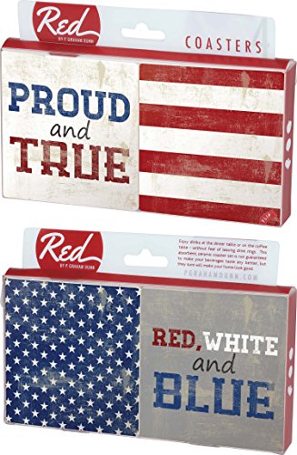 Proud and True Red White Blue Americana 4 Piece Absorbent Ceramic Coaster Set
