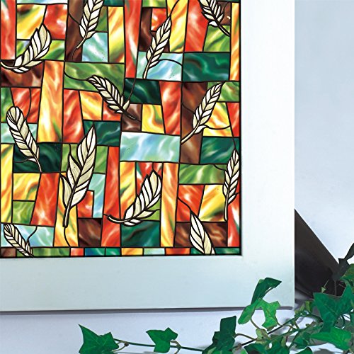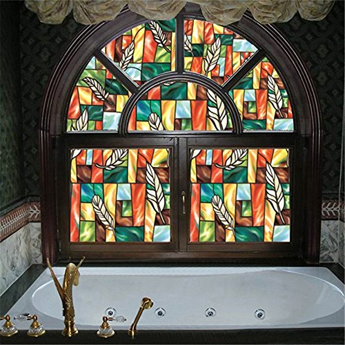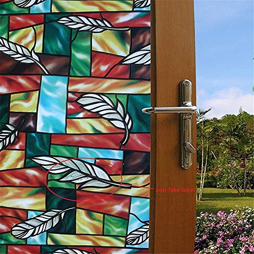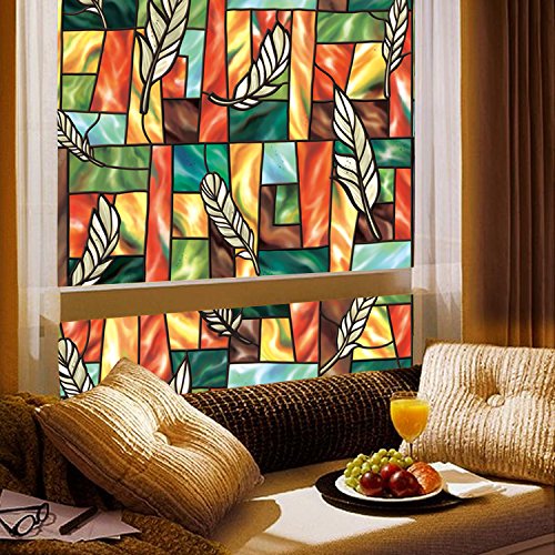 VEOLEY No Glue Window Film Privacy Clings Window Film Decorative Vinyl Static Glass Film for Windows/Door/Kitchen/Bedroom/Living Room, Feather Pattern (1.5 Ft by 6.5 Ft)