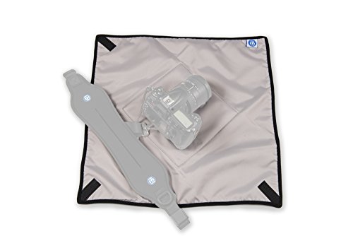 ADAPTABLE AND FLEXIBLE: Non scratch nylon water resistant surface on the inside, and soft durable velcro knit on the outside. CAMERA STRAP OR SLING COMPATIBLE: Use to quickly cover or uncover your DSLR whilst attached to a strap or sling. GREY INTERIOR makes for a convenient grey card to adjust white balance.