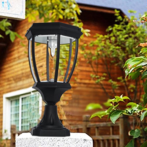 Large elegant outdoor lamp kits with black finish. Measures 9 inches in diameter by 16 inches in height.
