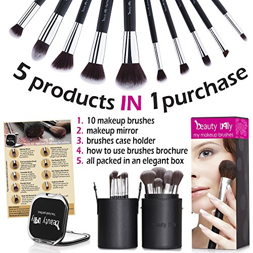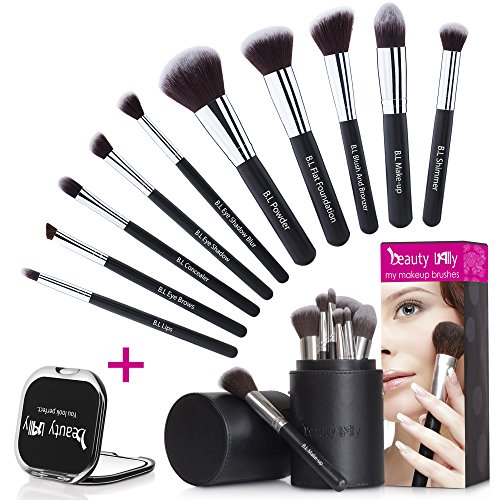 beauty Lally Professional Make Up Brush Set, Synthetic Hair, Giving You Full Coverage For Everyday Use, Soft, No Shed At All, Case and Mirror, Pack of 10