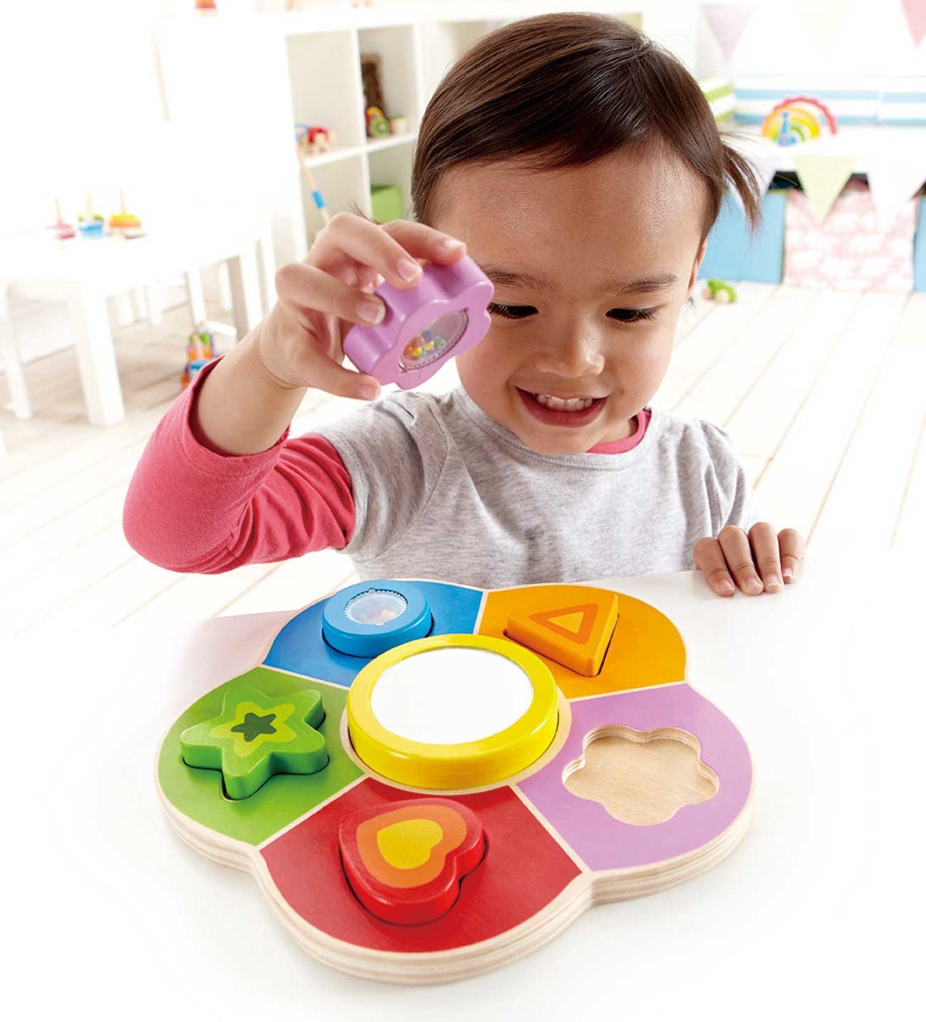 【Alignment / color matching】 A large goron form, a bright color, and a small mirror make us think about various things in toddlers.