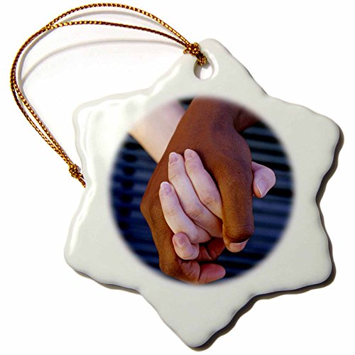 3dRose orn_83230_1 Interracial Couple Holding Hands Love David R. Frazier Snowflake Decorative Hanging Ornament, Porcelain, 3-Inch