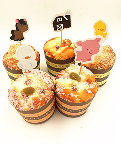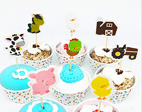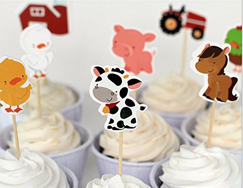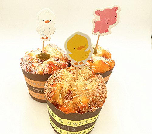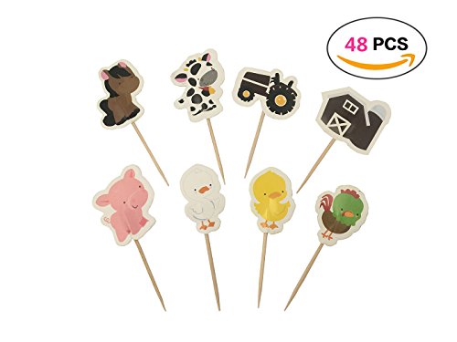 Babycola's Mum 48pcs Farm Zoo Animal Cake Cupcake Appetizer Decorations Toppers Picks