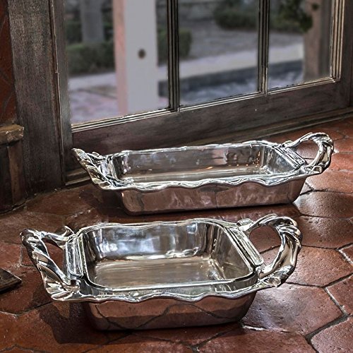 Studio : Beatriz Ball Publisher : Beatriz Ball Binding : Kitchen Product Description The gently curving lines and rich surface of the VENTO Sasha Pyrex Casserole (8x8) make it a go-to piece for elegant entertaining. The addition of practical ribbon-like handles increases its versatility--and eye-appeal--and it goes from oven to table with ease. Sandcast and hand polished, the the silver casserole is designed to hold an 8x8 Pyrex dish (not included), but may be used without one. Made of an FDA safe, easy-care 93% aluminum alloy. Item 6781: 17 x 12 3/4 x 1 3/8 0