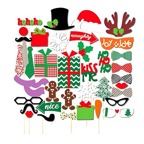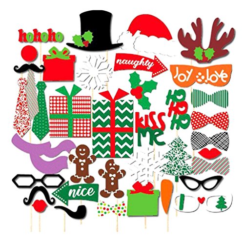 Ac.y.c Fanny Photo Booth Props DIY Kit for Wedding Birthday Christmas Party Reunions Costumes with Mustache on a stick, Hats, Glasses, Mouth, Bowler (39 Christmas)