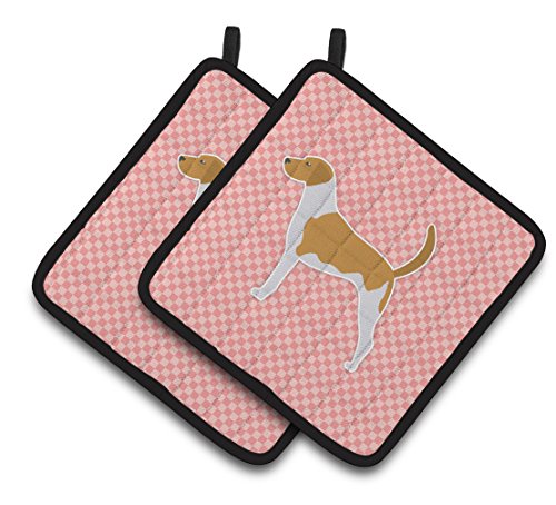 Caroline's Treasures American Foxhound Checkerboard Pink Pair of Pot Holders BB3598PTHD, 7.5HX7.5W, Multicolor