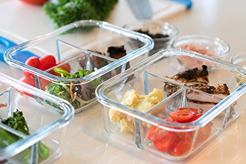 ONLY USE BOROSILICATE GLASS – Our glass portion control containers with lids are made from borosilicate glass, much stronger than the tempered glass meal prep containers other brands sell. Pyrex containers are made from borosilicate glass because it is stronger and can hold up to temperature changes much better than cheaper glass food storage containers. Our 3 compartment glass meal prep containers with lids are the best quality and strongest on the market we guarantee it.