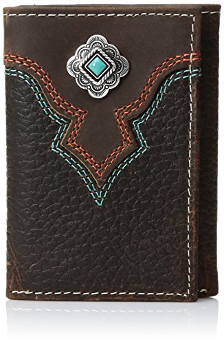 Studio : Ariat Men's Accessories Publisher : Ariat Men's Accessories Binding : Apparel Product Description This beautiful Nocona tri-fold wallet by medium and f western products features distressed brown leather with a decorative concho with a turquoise stone. Red and turquoise stitching set off the overlay design. Inside features multiple compartments for your credit cards, cash, and a place for your id. 0