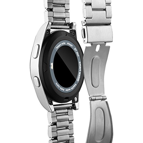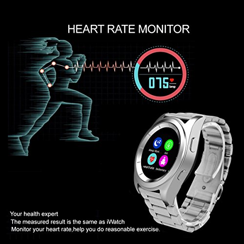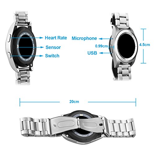 Main Features: ? Heart Rate Monitor: Identify physical condition. Adjust the exercise intensity to achieve the effect of exercise. Please note that the smart watch doesn't support real-time heart rate monitoring. ? Pedometer: Monitor distance, speed, time, steps, calorie consumption to reach your health target. ? Sleep Monitor: Monitor your sleep time and quality, and wake you up by vibration. ? Music Player: Local Music Bluetooth Music. Local music can save in the watch memory and Bluetooth music means playing smartphone music through Bluetooth Connection. All sounds are from watch speaker. ? Remote Notifications: Alerting and Checking all your phone SMS, Facebook, Wechat, Whatsapp messages on the watch when you are inconvenient to check the phone. ? Phonebook: Local contacts Bluetooth contacts. 500 contacts max for Local. All the contacts are from synchronization. ? Standard Time and Military Time: Standard Time and Military can suit different people.
