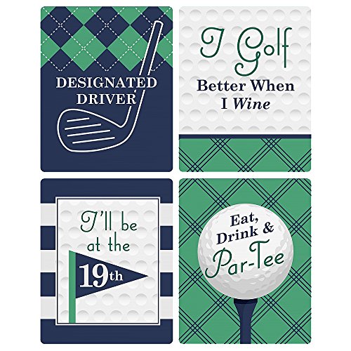 Par-Tee Time - Golf - Birthday or Retirement Party Wine Bottle Labels - Set of 4