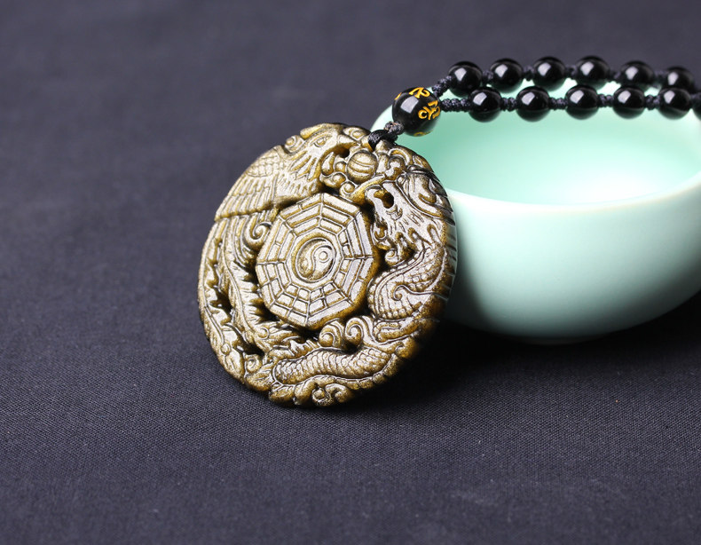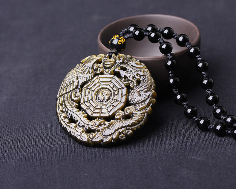 【商品名称】开光黑曜石五行八卦符 太极八卦吊坠 阴阳五行护身符 五行八卦福