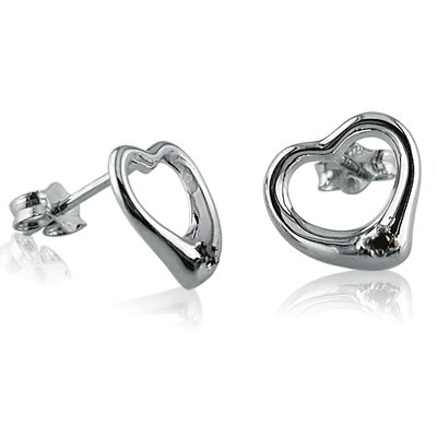 - Title : Open Heart Black Diamond Stud Earrings in Sterling Silver .925