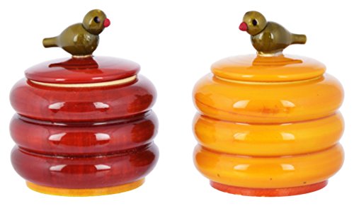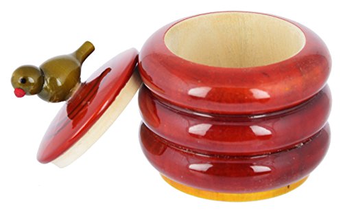 Sharada International Wooden Kumkum Box (4 Cm X 3 Cm X 4.5 Cm, Red And Yellow, Pack Of 2)