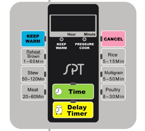 Reduce time spent in the kitchen with help of this 6.5-quart Electric Pressure Cooker. Pressure cooking is cooking in a sealed vessel that does not permit steam to escape below a preset pressure. Pressure cooking cooks food more quickly compared to conventional cooking methods, which also saves energy. The food is heated quickly due to internal steam pressure that builds up, which cooks food at a higher temperature and with greater humidity. Pressure cooking locks in heat, moisture and flavor, as well as nutrients and vitamins for a healthy meal. SPT EPC-11A Pressure Cooker offers 6 adjustable programs: Rice, Multigrain, Poultry, Meat, Stew and Reheat/Brown. Up to 24 hours Delay Start Timer allows you to prepare the food and have it ready at a later time. Optional Keep-Warm mode holds the temperature of the food until ready to eat. Safety lid lock prevents accidental opening when pressurized. Equipped with a durable stainless steel inner pot with no coatings and an attractive stainless steel exterior.Feature