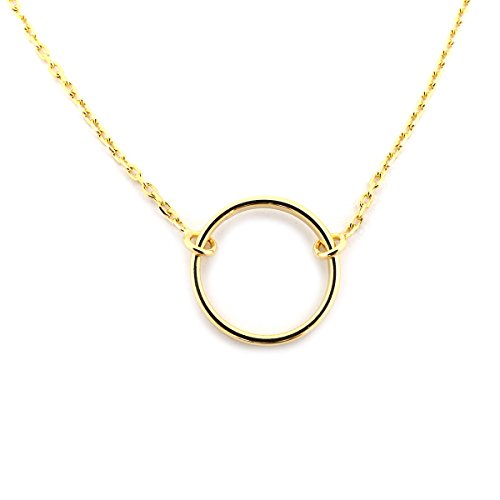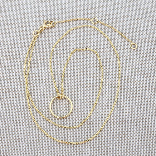The circle measures 12mm (1/2 in). The chain is 0.9mm thick and is 18 inches long but can be adjusted to 16 inches. The necklace weighs 1.82g.
