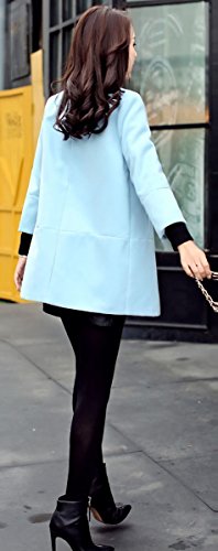 -. Title : (リィミツー)Rymi2s オフィス 通勤 七分袖 ノーカラー ロング ジャケット コート ブルー S M L レディース 春 冬