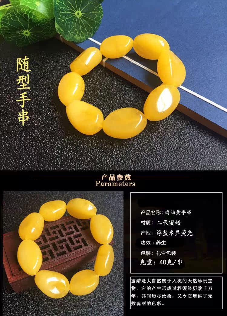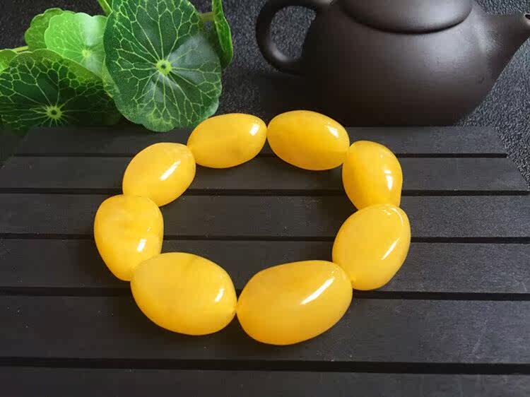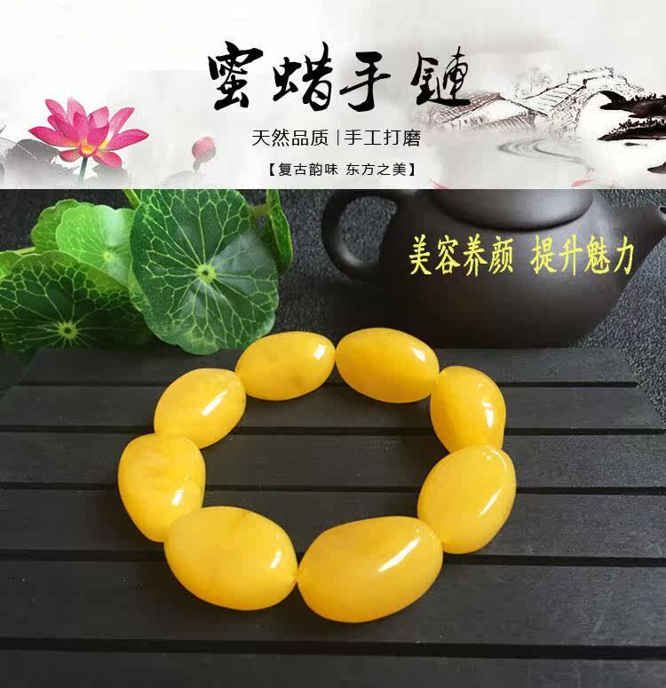 波罗的海纯鸡油黄蜜蜡随行手串男女款浮盐水桶珠圆珠老蜜蜡手链