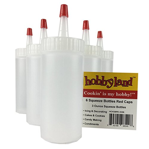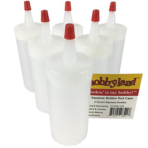 Hobbyland Squeeze Bottles with Yorker Spouts and Red Caps (3 oz, 6 Pack)