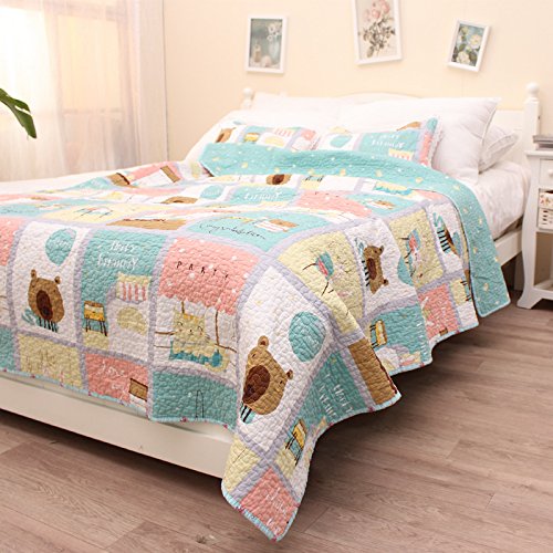 Puppy & Cats & Mouse Baby Bedding Coverlet Quilt Bedspread Throw Blanket for Kid's Girl & Boys Bed Gift 100% Natural Cotton Twin (43" X 51", green)
