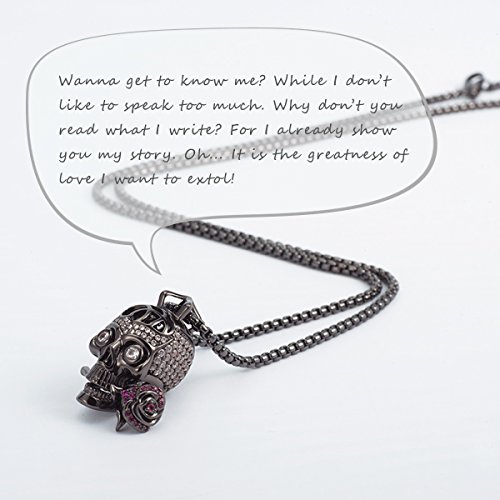 Design Concept: The necklace is inspired by "Romance Forever". The skull tells the everlasting love beyond death; the rose represents romantic love full of sweetness; while the brain stands for faith and hope towards the eternal love. Where is the brain? Just look it up from our detailed pictures. The fascinating brain is paved by crystals. Guess what? It will float inside the skull and vibrate lively a rhythm of Rock and Roll!