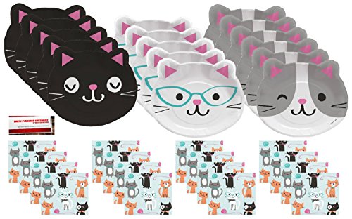 Purr-Fect Cats Party Supplies Bundle Pack for 16 guests (Plus Party Planning Checklist by Mikes Super Store)